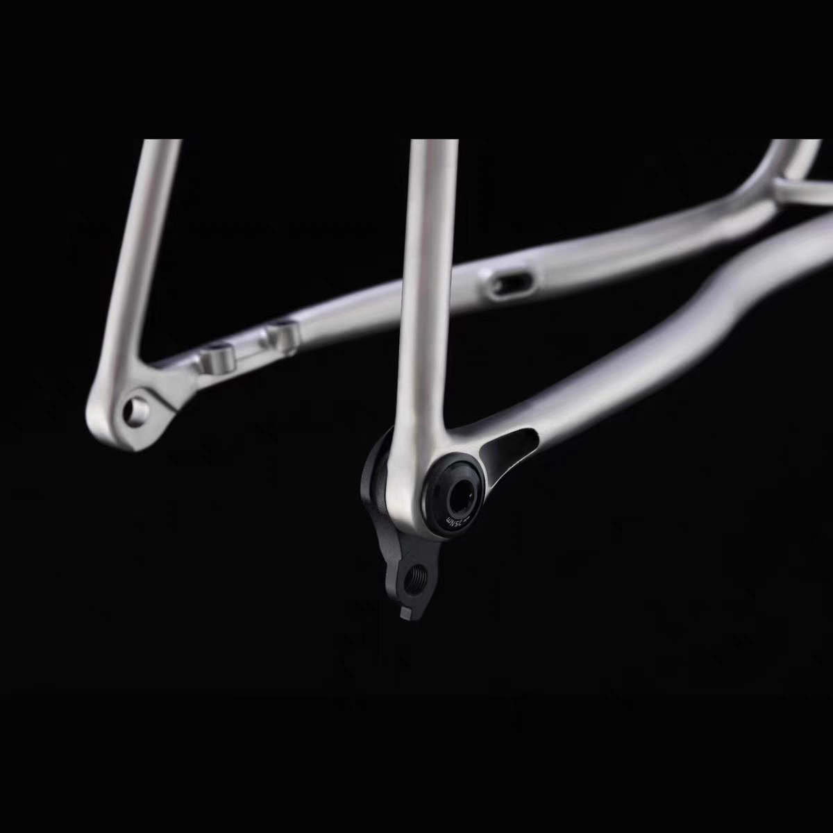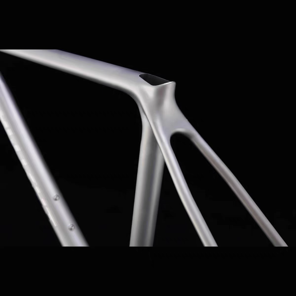 Features: Brushed, mirror and sandblasted surface; hydro-formed tubes; 3D printed dropouts, yoke, and head tube; integrated high-rigid body